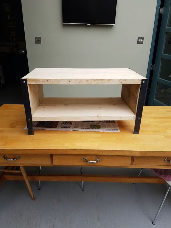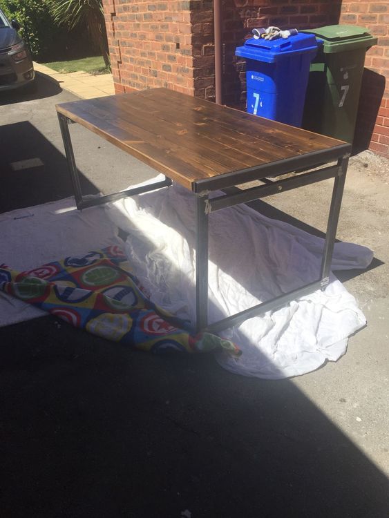 Made from reclaimed scaffolding board, mild steel 40x40x5 legs