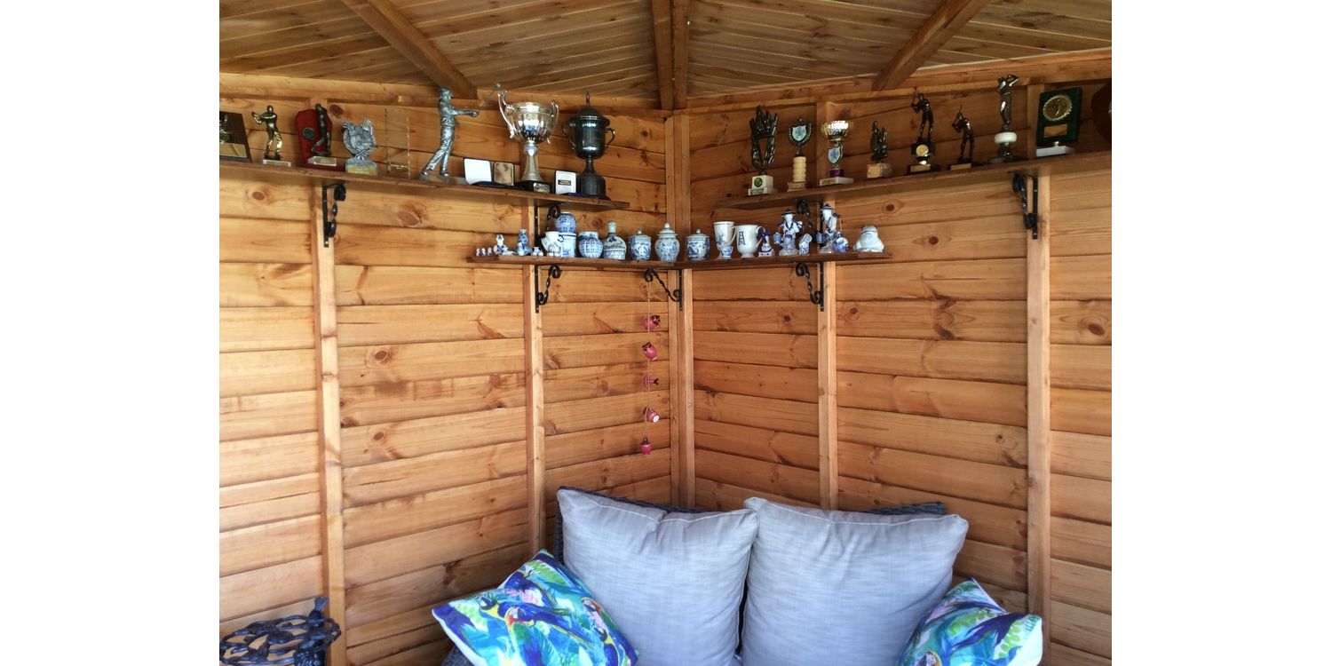 Brackets for shelving to display golf trophies and ornaments in summer house