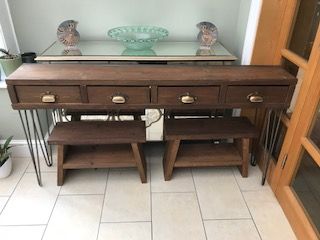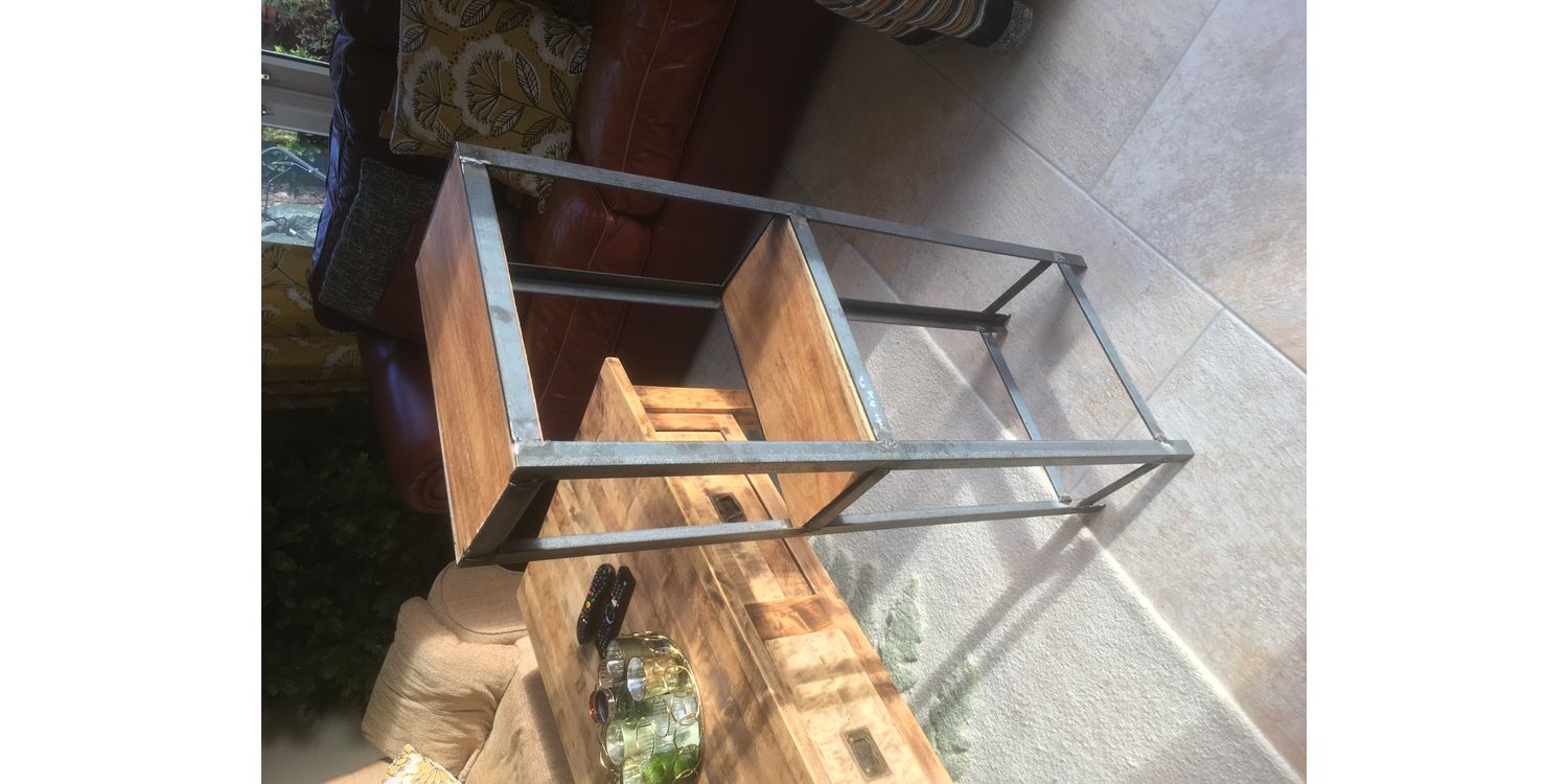 This needed to be narrow as it fits in my observatory but a scaffold plank was just a little bit too narrow so I added the box steel on the back and it matches the legs.