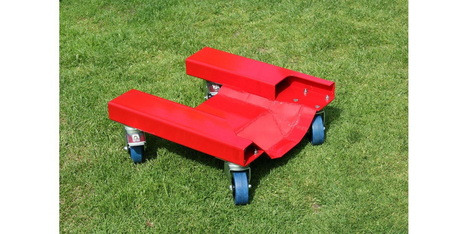 I constructed this trolley to aid with moving Land Rover short bell-housing gearboxes around the workshop and underneath vehicles.