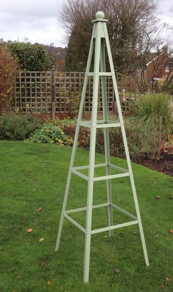 Built with 3mm mild steel angle uprights and flat bar horizontal rails, I built this two metre high garden obelisk as a Christmas present for a friend with a new garden. The top is turned from a piece of oak found in the log shed and all the components were painted before being assembled using nuts and bolts. Easy project for a 82 year-old handyman shielding from Covid.