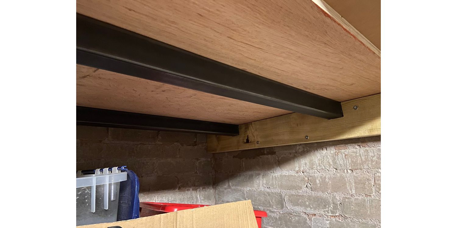 Needed to replace standalone racks so we could get my wifes new car under the bottom shelf so she can park it in the garage. 2 x 2.74m 50mm box section support on wooden strips did the job perfectly.